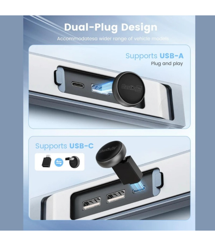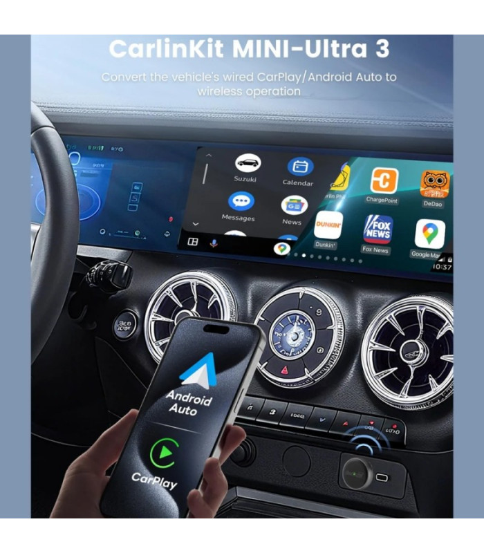 Experience a smooth transition from a wired connection to a fully wireless setup with the Carlinkit Mini Ultra3 Adapter, compatible with Apple CarPlay and Android Auto.