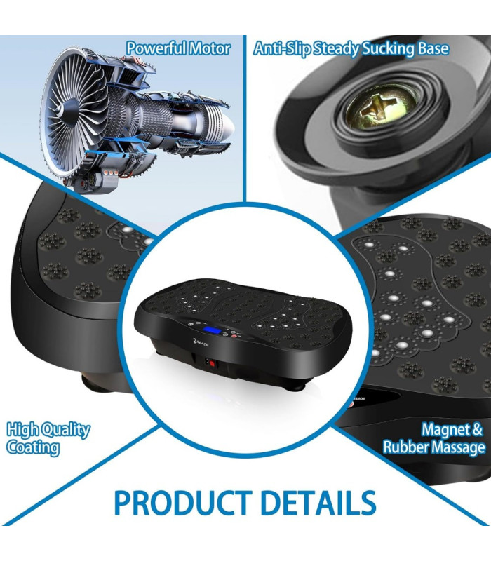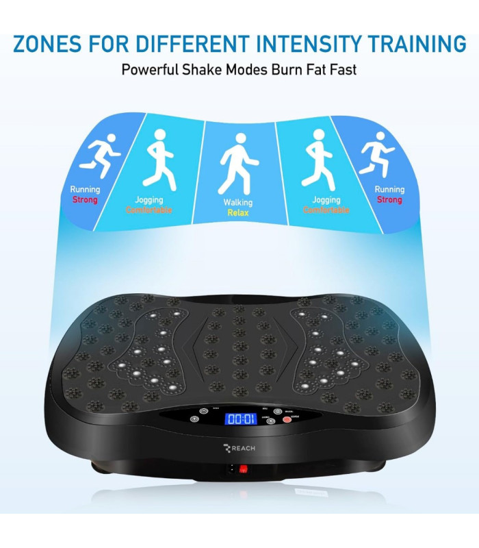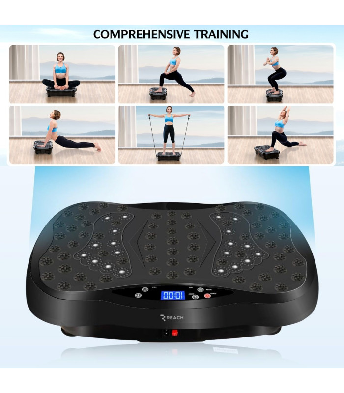 Vibro treniruoklis Reach EX150 su pasipriešinimo juostomis – universalus 3in1 įrenginys, skirtas namų treniruotėms ir kūno formavimui. Treniruoklio veikimo principas labai paprastas: vibracijos apsunkina pusiausvyros laikymą todėl jūsų kūnas įtempia raumenis, kad ją išlaikytų – tai funkcionalus sprendimas mažinant kūno svorį ir gerinant visų raumenų būklę. 10 minučių yra lygu 1 valandai sporto salėje.