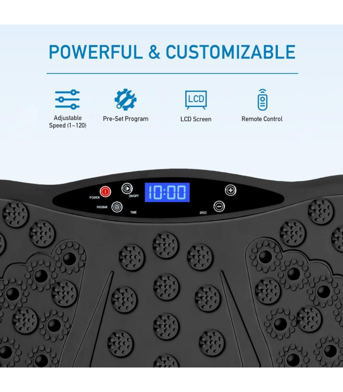 Naudodami vibracinę plokštę taip pat galite paįvairinti pratimus, tokius kaip pritūpimai, įtūpstai ir atsispaudimai, kad pasiektumėte geresnių rezultatų.