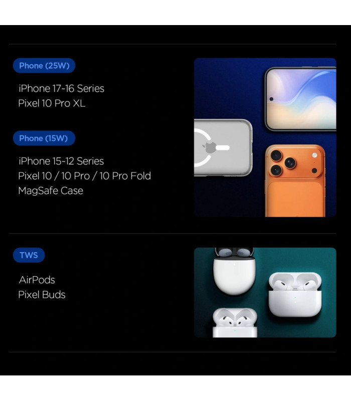 - Išmaniojo telefono išvesties galia: 25W