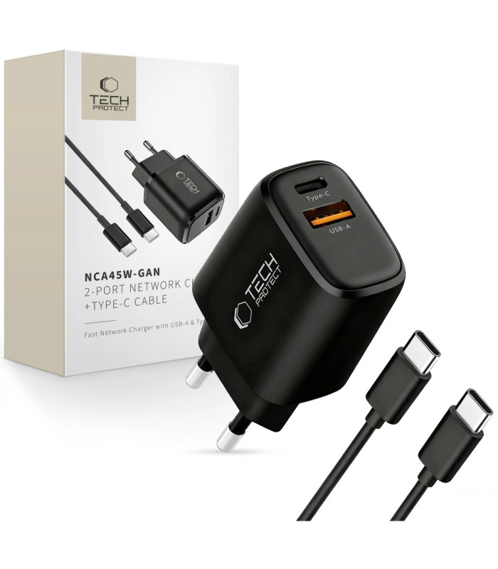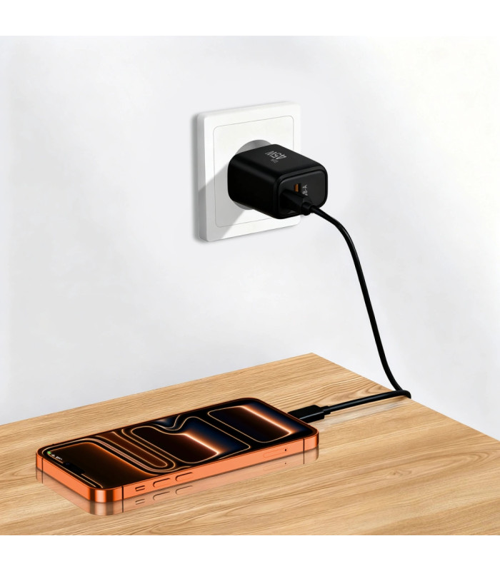 Du prievadai: USB-C (45 W) ir USB-A (18 W)