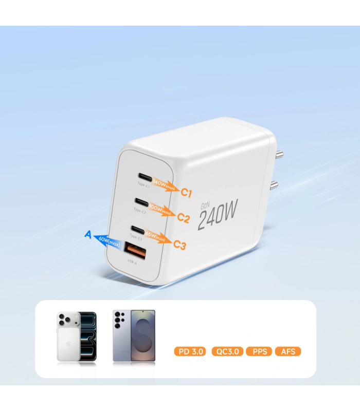 | Kroviklio jungtis: | 1x USB-A + 3x USB-C |