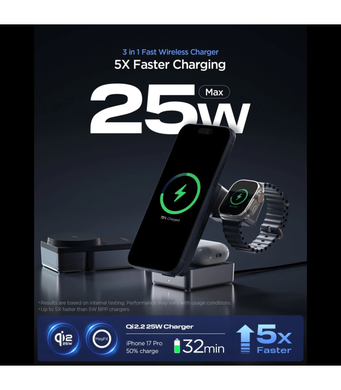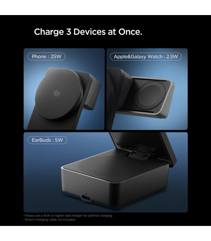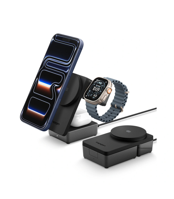1 x „Spigen Essential Qi2.2“ 25 W 3 viename magnetinis „MagSafe“ įkroviklis