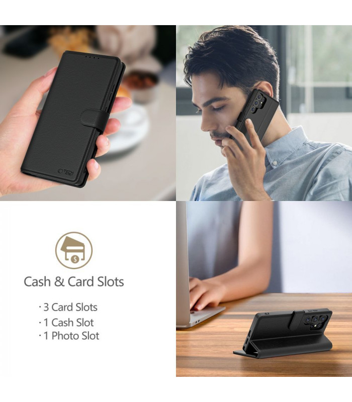 Tech-Protect Wallet yra patogus ir patvarus, klasikinio stiliaus atverčiamas dėklas su dėklu pinigams ir kortelėms, pagamintas iš ekologiškos odos. Elegantiškas ir stilingas su subtiliai išbaigtu apvadu.