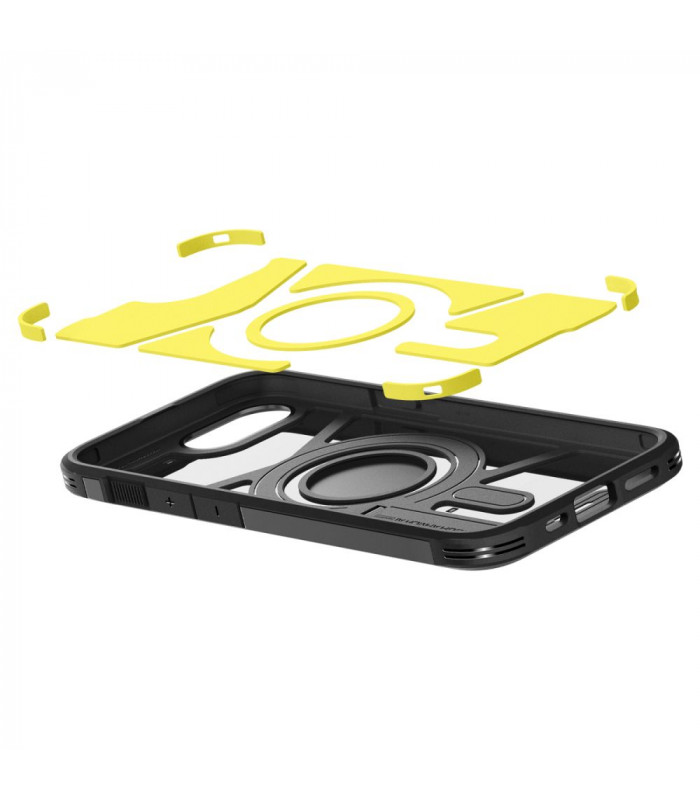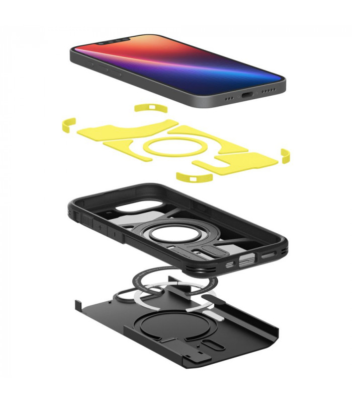 Spigen serijos Tough Armor Mag dėklas yra patobulinta jo pirmtako versija. Dėklas aprūpintas magnetiniu žiedu, suderinamu su MagSafe tvirtinimo ir belaidžio įkrovimo sistema.
