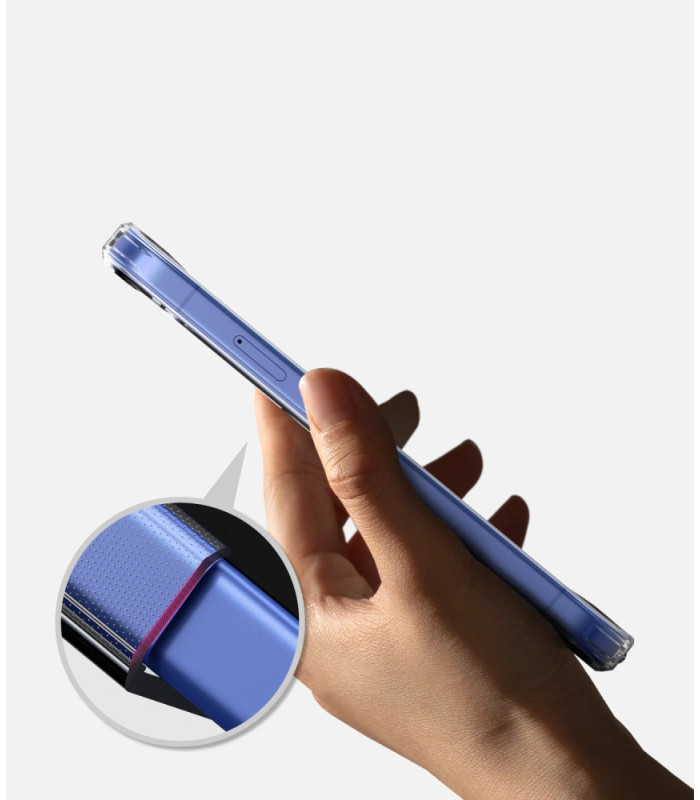Pagaminta iš lankstaus polikarbonato, papildomai sustiprinta smūgius sugeriančia TPU medžiaga. Visa tai puikiai pašalina bet kokius kritimus ir apsaugo nuo įbrėžimų.
