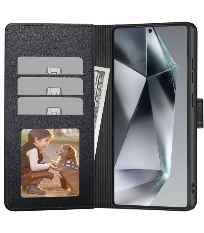 Tech-Protect Wallet yra patogus ir patvarus, klasikinio stiliaus atverčiamas dėklas su dėklu pinigams ir kortelėms, pagamintas iš ekologiškos odos. Elegantiškas ir stilingas su subtiliai išbaigtu apvadu.
