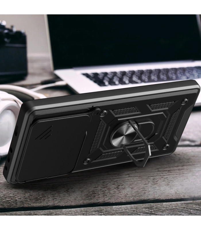 Camshield Pro šarvuotas dėklas puikiai apsaugo visą telefoną kritimo metu ir įbrėžimų. Korpusas yra aukštos kokybės TPU ir plastiko derinys. Lankstus ir smūgius sugeriantis poliuretanas bei patvarus ir trinčiai atsparus polikarbonatas sukuria patikimą hibridinę jūsų įrenginio apsaugą.