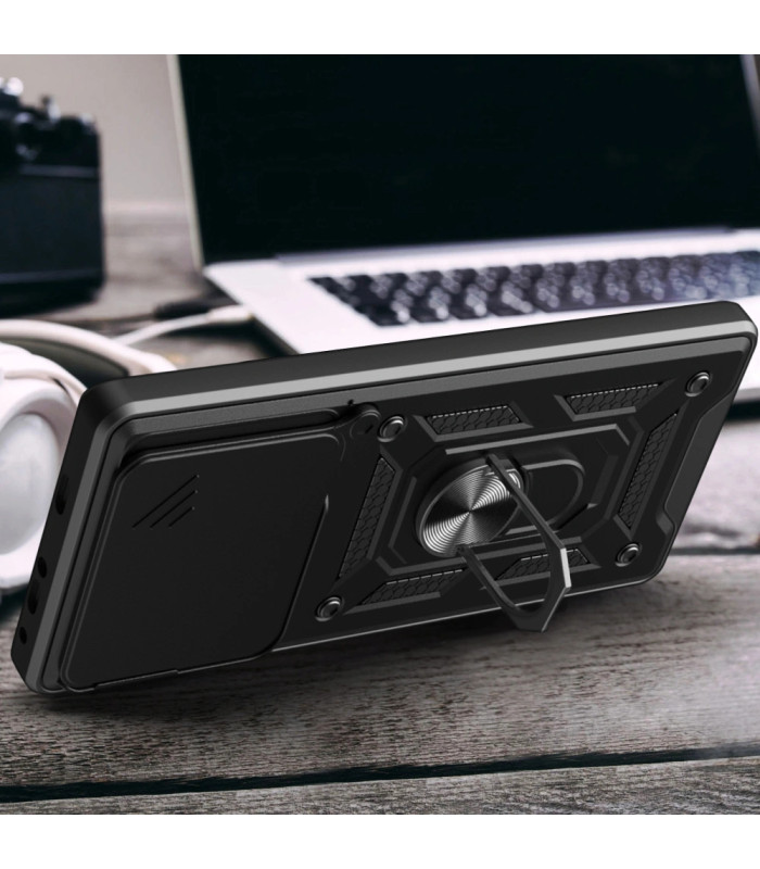 Camshield Pro šarvuotas dėklas puikiai apsaugo visą telefoną kritimo metu ir įbrėžimų. Korpusas yra aukštos kokybės TPU ir plastiko derinys. Lankstus ir smūgius sugeriantis poliuretanas bei patvarus ir trinčiai atsparus polikarbonatas sukuria patikimą hibridinę jūsų įrenginio apsaugą.