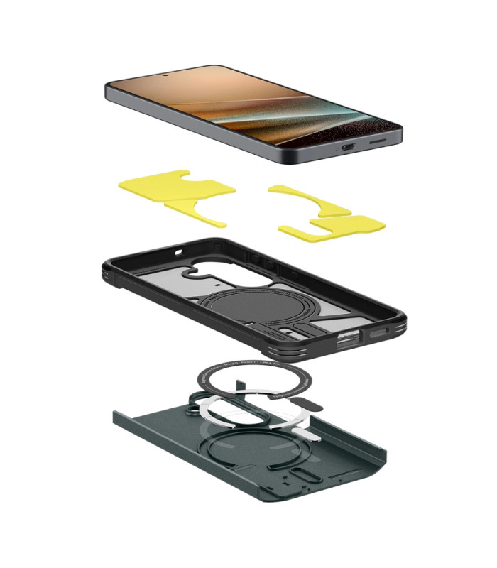 Spigen serijos Tough Armor Mag dėklas yra patobulinta jo pirmtako versija. Dėklas aprūpintas magnetiniu žiedu, suderinamu su MagSafe tvirtinimo ir belaidžio įkrovimo sistema.