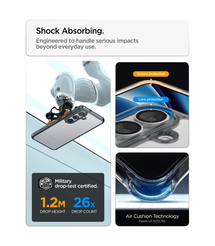 Su šiuo dėklu buvo atlikti karinės klasės bandymai, kuris gavo MIL-STD 810G-516,6 sertifikatą.