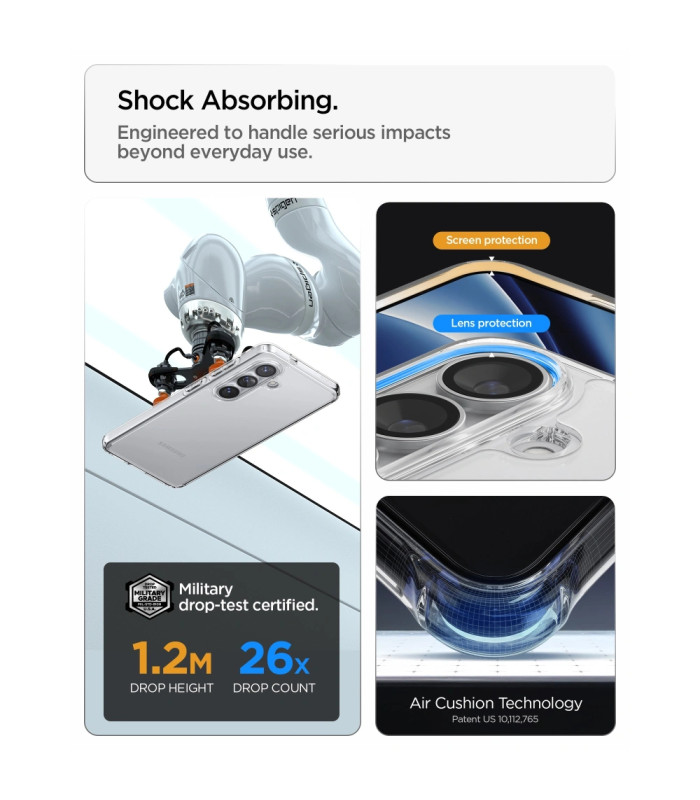 Su šiuo dėklu buvo atlikti karinės klasės bandymai, kuris gavo MIL-STD 810G-516,6 sertifikatą.