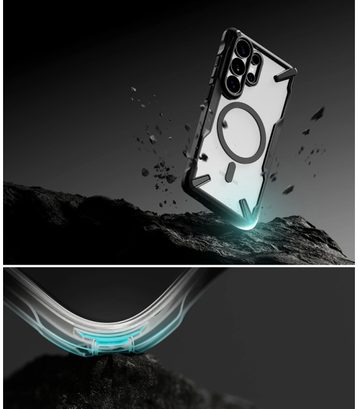 Unikalus Ringke Fusion X dėklas, kurio neabejotinas pranašumas yra mažas dydis, palyginti su siūloma apsauga.
