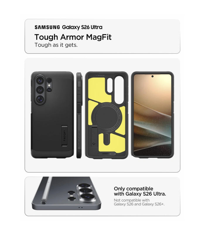 Spigen serijos Tough Armor Mag dėklas yra patobulinta jo pirmtako versija. Dėklas aprūpintas magnetiniu žiedu, suderinamu su MagSafe tvirtinimo ir belaidžio įkrovimo sistema.